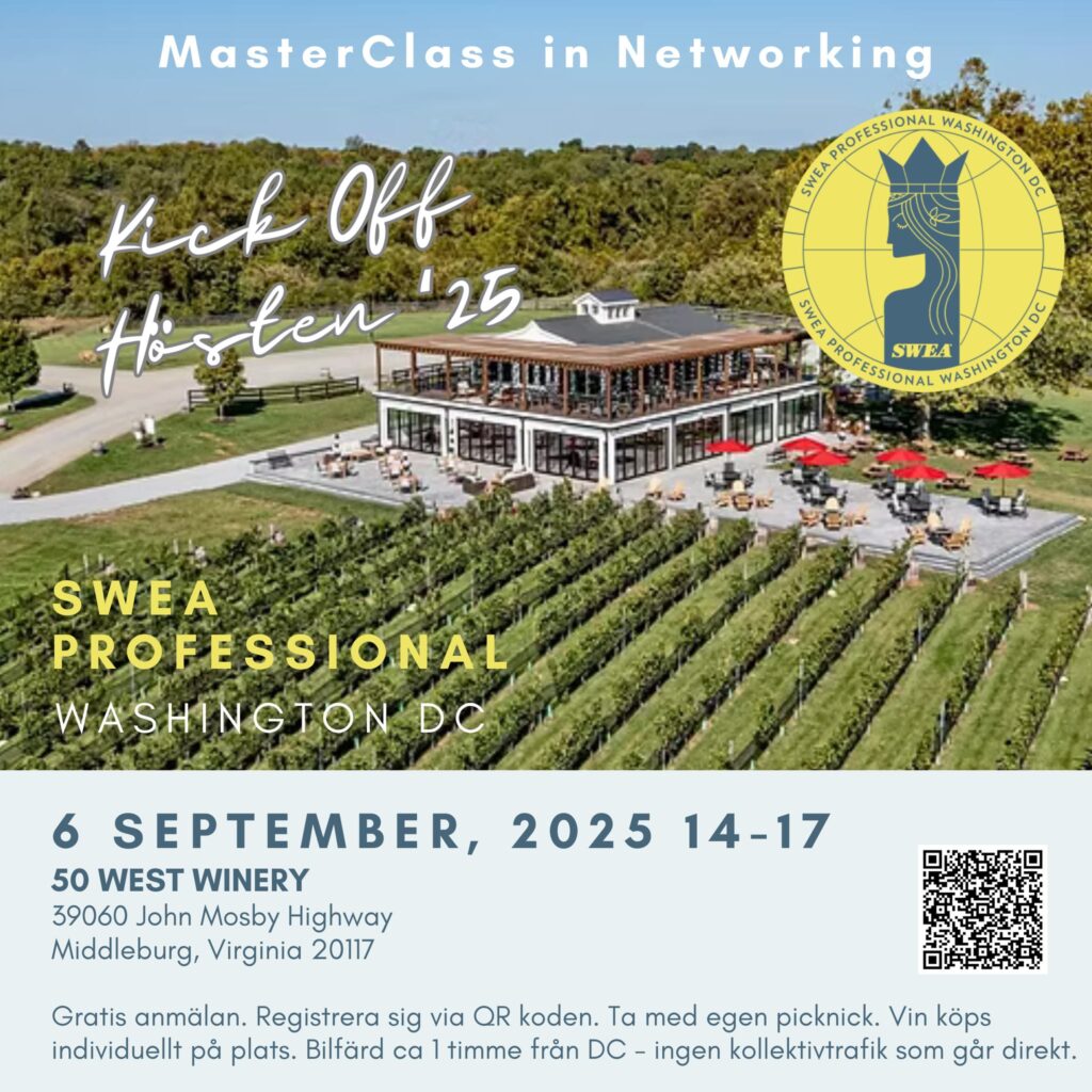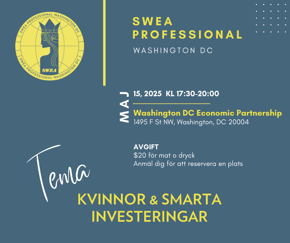Vi är så glada att ha dig med i vårt nätverk i Washington DC. Här delar vi med oss av våra arbetslivserfarenheter och stöttar varandra i att göra bra karriärval och främja vår karriärutveckling. SWEA Professional DC är inte bara en plattform för yrkesmässig utveckling utan också ett fantastiskt sätt att nätverka och skapa nya vänskapsband.